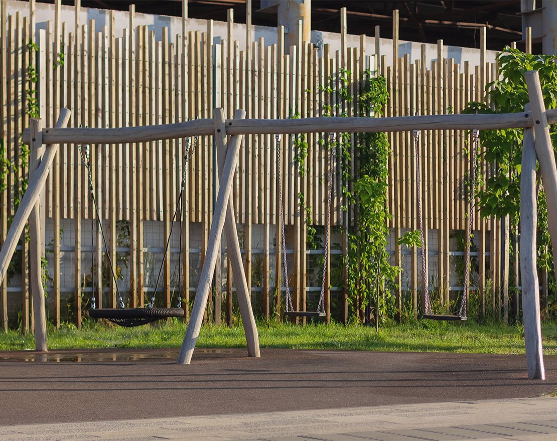 Качели серии Legno «LE-04.03-01». Устанавливается на детских уличных площадках.