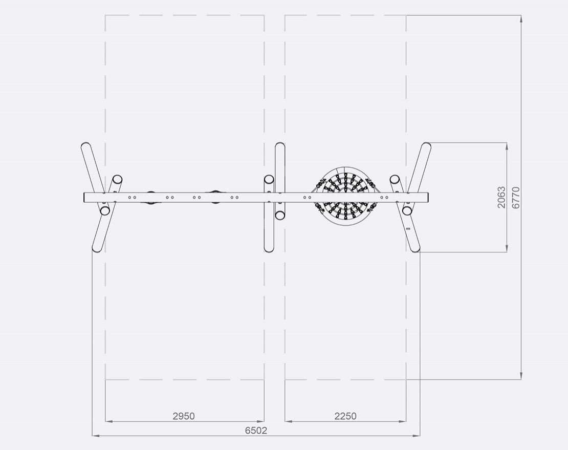 Состоят из опорных стоек, перекладины и 3-х сидений с подвесами. Для большего комфорта, на подвесах установлены пластиковые ручки.