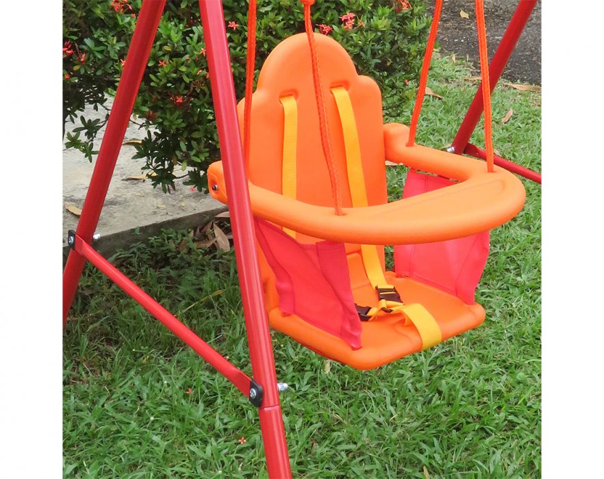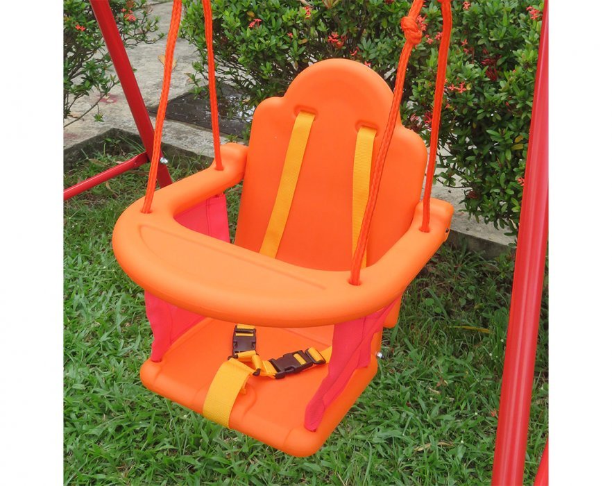 Ремни безопасности на сиденье предотвращают выпадение ребенка.