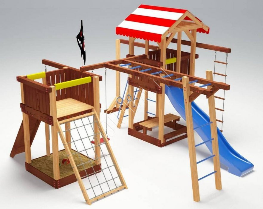 Площадка Галиот 17 обладает довольно широким функционалом (который по желанию можно легко расширить). Детская площадка предназначена для дачи, коттеджа.